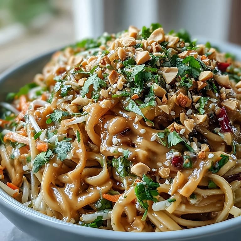 Save One sticky summer afternoon, my neighbor brought over a container of these noodles while I was nursing a wilted salad and wondering what to eat. The moment I lifted the lid, that toasted sesame and peanut aroma hit me like a warm breeze, and I was completely sold before even tasting it. What struck me most wasn't just how good it tasted, but how alive it felt—all those bright vegetables speaking for themselves, held together by a dressing that managed to be both comforting and surprisingly light. I've been making versions of it ever since, tweaking the ratios and discovering that the real magic happens when you don't overthink it.