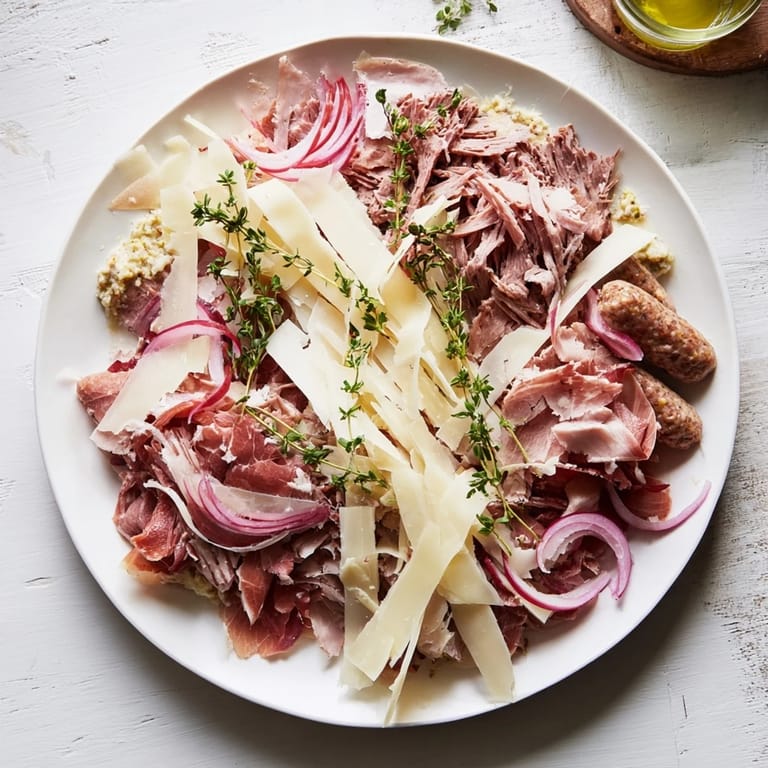 Save There's something about building a charcuterie board that feels less like cooking and more like storytelling with your hands. I discovered this particular arrangement on an evening when I had mismatched cheeses in the fridge and a craving for something that tasted deliberate rather than thrown together. The contrast between rough, torn meats and those delicate, paper-thin cheese ribbons struck me as honest somehow—bold without pretense. It became my favorite way to feed people without exhausting myself in the kitchen.