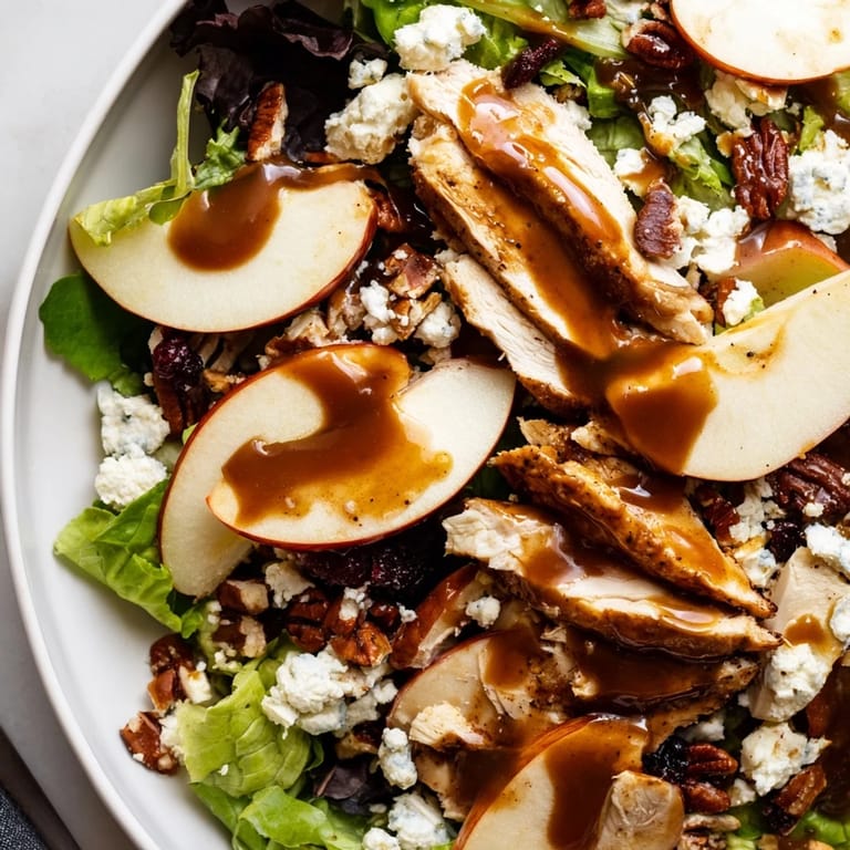 Save The kitchen smelled like butter and burnt sugar when I realized I'd let the caramel bubble too long. My sister was visiting that October weekend, and I'd promised her something that tasted like fall without feeling heavy. We salvaged the dressing by whisking in cold olive oil until it turned glossy and pourable, then tossed it over greens still cold from the farmer's market. One bite and she looked up, surprised, because somehow the sweetness didn't overpower the chicken or the tart apple slices.