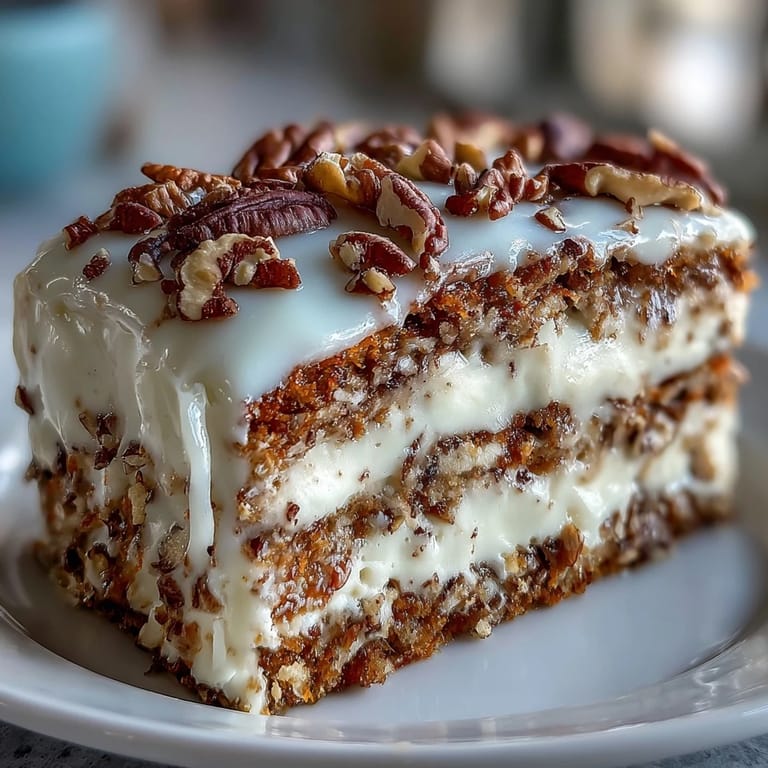 Save My neighbor dropped off a basket of spring carrots one April morning, and I stood there holding them like I'd just won something valuable. That afternoon, I pulled out an old carrot cake recipe and decided to reinvent it—three layers instead of one, cream cheese frosting that actually tasted like something, and enough walnuts to make it feel substantial. The kitchen filled with the smell of cinnamon and nutmeg while the cakes baked, and I knew this wasn't just another dessert.