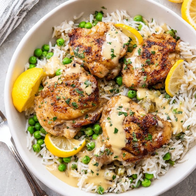 Save This one-pot creamy lemon chicken and rice delivers comforting flavor and irresistible brightness in every spoonful. It is my staple for weeknights when I want something nourishing and full of zesty flavor but do not want to do a pile of dishes afterward. With juicy chicken thighs, fluffy rice, sweet peas, and a luxuriously creamy lemon sauce, this dish always makes dinner feel special but could not be easier.