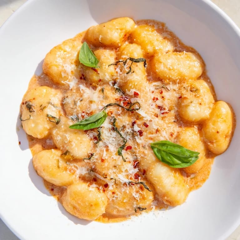 - Ladle the gnocchi and sauce into bowls, top with a scatter of fresh basil and extra Parmesan, and serve hot while the steam still rises.