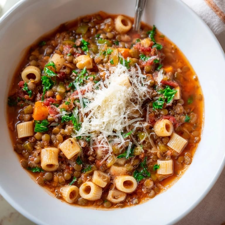 Save I threw this soup together on a rainy Tuesday when the pantry was nearly bare and everyone was hungry. The lentils had been sitting in the cupboard for months, and I remembered my neighbor once saying they cooked faster than beans and tasted just as good. She was right. The whole pot bubbled away while I caught up on emails, and by the time I looked up, the kitchen smelled like an Italian grandmother had taken over.