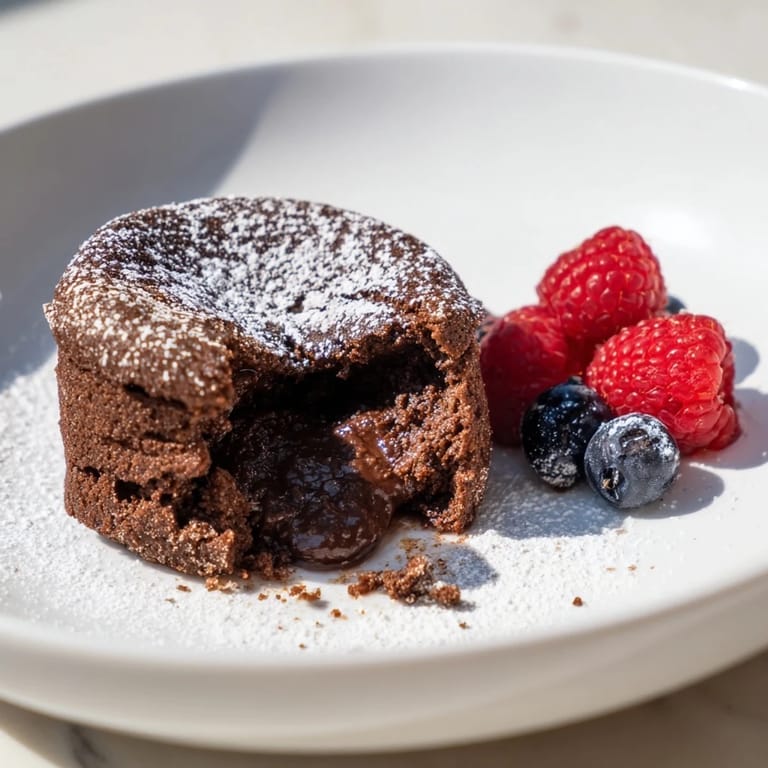 Save Decadent individual chocolate cakes with a warm, gooey molten center — perfect for an elegant dessert or a comforting treat.